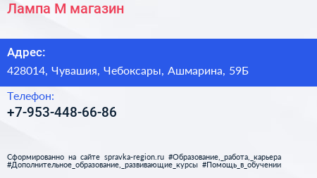Лампа М, магазин по адресу 428014, Чувашия, Чебоксары, Ашмарина, 59Б в дальнейшем Организация, размещена в следующих категориях: