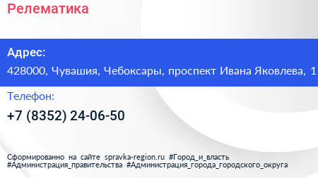 Релематика по адресу 428000, Чувашия, Чебоксары, проспект Ивана Яковлева, 1 в дальнейшем Организация, размещена в следующих категориях: