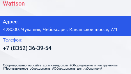 Wattson по адресу 428000, Чувашия, Чебоксары, Канашское шоссе, 7/1 в дальнейшем Организация, размещена в следующих категориях: