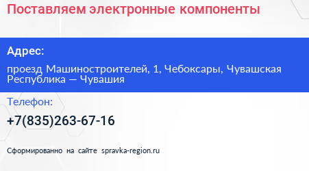 Поставляем электронные компоненты по адресу проезд Машиностроителей, 1, Чебоксары, Чувашская Республика — Чувашия в дальнейшем Организация, размещена в следующих категориях: