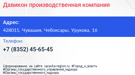 Давикон, производственная компания по адресу 428015, Чувашия, Чебоксары, Урукова, 16 в дальнейшем Организация, размещена в следующих категориях: