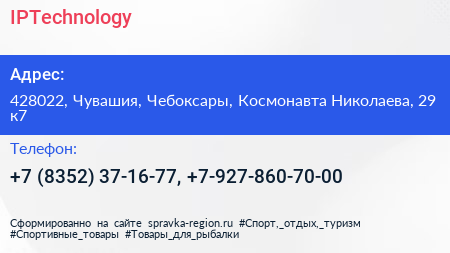 IPTechnology по адресу 428022, Чувашия, Чебоксары, Космонавта Николаева, 29 к7 в дальнейшем Организация, размещена в следующих категориях: