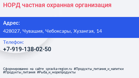 НОРД, частная охранная организация по адресу 428027, Чувашия, Чебоксары, Хузангая, 14 в дальнейшем Организация, размещена в следующих категориях: