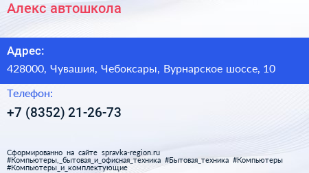 Алекс, автошкола по адресу 428000, Чувашия, Чебоксары, Вурнарское шоссе, 10 в дальнейшем Организация, размещена в следующих категориях: