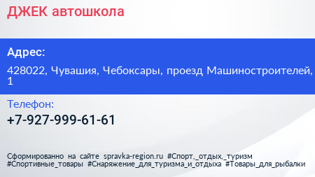 ДЖЕК, автошкола по адресу 428022, Чувашия, Чебоксары, проезд Машиностроителей, 1 в дальнейшем Организация, размещена в следующих категориях: