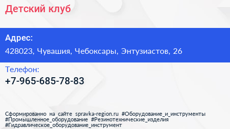 Детский клуб по адресу 428023, Чувашия, Чебоксары, Энтузиастов, 26 в дальнейшем Организация, размещена в следующих категориях: