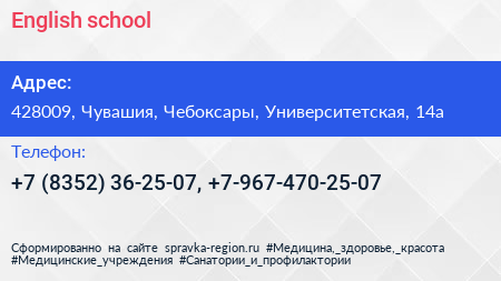 English school по адресу 428009, Чувашия, Чебоксары, Университетская, 14а в дальнейшем Организация, размещена в следующих категориях: