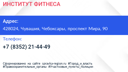 ИНСТИТУТ ФИТНЕСА по адресу 428024, Чувашия, Чебоксары, проспект Мира, 90 в дальнейшем Организация, размещена в следующих категориях: