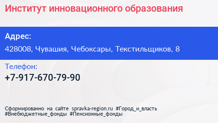 Институт инновационного образования по адресу 428008, Чувашия, Чебоксары, Текстильщиков, 8 в дальнейшем Организация, размещена в следующих категориях: