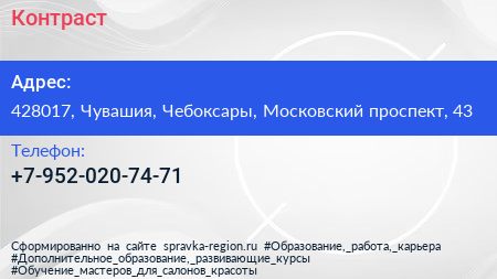 Контраст по адресу 428017, Чувашия, Чебоксары, Московский проспект, 43 в дальнейшем Организация, размещена в следующих категориях: