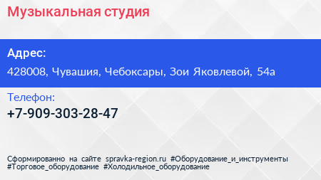 Музыкальная студия по адресу 428008, Чувашия, Чебоксары, Зои Яковлевой, 54а в дальнейшем Организация, размещена в следующих категориях: