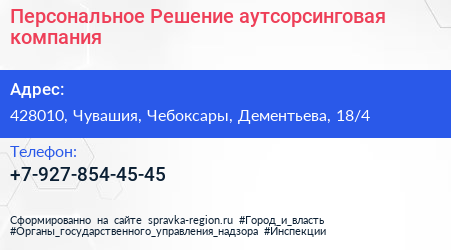Персональное Решение, аутсорсинговая компания по адресу 428010, Чувашия, Чебоксары, Дементьева, 18/4 в дальнейшем Организация, размещена в следующих категориях: