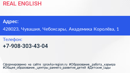REAL ENGLISH по адресу 428023, Чувашия, Чебоксары, Академика Королёва, 1 в дальнейшем Организация, размещена в следующих категориях: