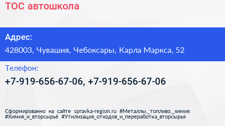 ТОС, автошкола по адресу 428003, Чувашия, Чебоксары, Карла Маркса, 52 в дальнейшем Организация, размещена в следующих категориях:
