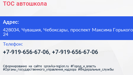 ТОС, автошкола по адресу 428034, Чувашия, Чебоксары, проспект Максима Горького, 24 в дальнейшем Организация, размещена в следующих категориях: