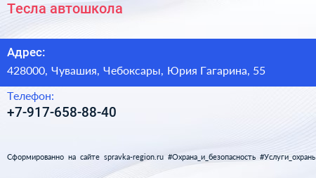 Тесла, автошкола по адресу 428000, Чувашия, Чебоксары, Юрия Гагарина, 55 в дальнейшем Организация, размещена в следующих категориях: