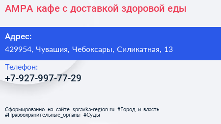 АМРА, кафе с доставкой здоровой еды по адресу 429954, Чувашия, Чебоксары, Силикатная, 13 в дальнейшем Организация, размещена в следующих категориях: