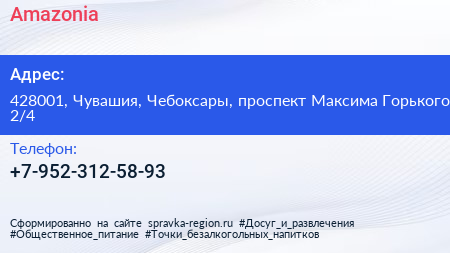 Amazonia по адресу 428001, Чувашия, Чебоксары, проспект Максима Горького, 2/4 в дальнейшем Организация, размещена в следующих категориях: