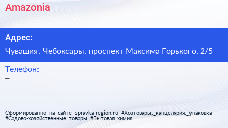 Amazonia по адресу Чувашия, Чебоксары, проспект Максима Горького, 2/5 в дальнейшем Организация, размещена в следующих категориях: