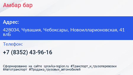Амбар, бар по адресу 428034, Чувашия, Чебоксары, Новоилларионовская, 41 влБ в дальнейшем Организация, размещена в следующих категориях: