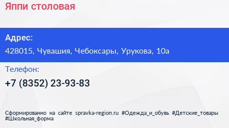 Яппи, столовая по адресу 428015, Чувашия, Чебоксары, Урукова, 10а в дальнейшем Организация, размещена в следующих категориях: