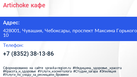 Artichoke, кафе по адресу 428001, Чувашия, Чебоксары, проспект Максима Горького, 10 в дальнейшем Организация, размещена в следующих категориях: