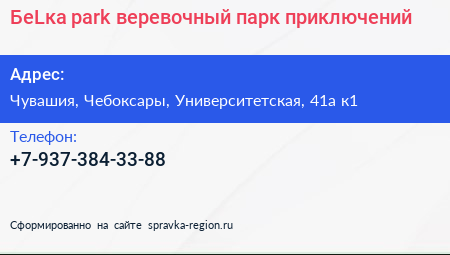 БeLка park, веревочный парк приключений по адресу Чувашия, Чебоксары, Университетская, 41а к1 в дальнейшем Организация, размещена в следующих категориях:
