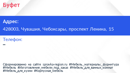 Буфет по адресу 428003, Чувашия, Чебоксары, проспект Ленина, 15 в дальнейшем Организация, размещена в следующих категориях: