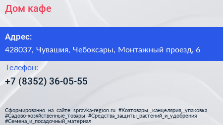 Дом, кафе по адресу 428037, Чувашия, Чебоксары, Монтажный проезд, 6 в дальнейшем Организация, размещена в следующих категориях: