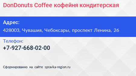 DonDonuts & Coffee, кофейня-кондитерская по адресу 428003, Чувашия, Чебоксары, проспект Ленина, 26 в дальнейшем Организация, размещена в следующих категориях: