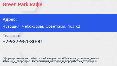 Green Park, кафе по адресу Чувашия, Чебоксары, Советская, 46а к2 в дальнейшем Организация, размещена в следующих категориях: