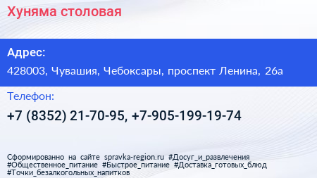 Хуняма, столовая по адресу 428003, Чувашия, Чебоксары, проспект Ленина, 26а в дальнейшем Организация, размещена в следующих категориях: