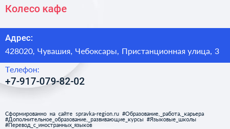 Колесо, кафе по адресу 428020, Чувашия, Чебоксары, Пристанционная улица, 3 в дальнейшем Организация, размещена в следующих категориях: