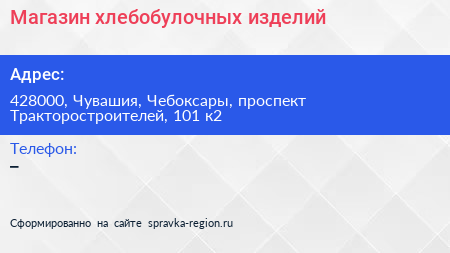 Магазин хлебобулочных изделий по адресу 428000, Чувашия, Чебоксары, проспект Тракторостроителей, 101 к2 в дальнейшем Организация, размещена в следующих категориях: