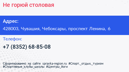 Не горюй, столовая по адресу 428003, Чувашия, Чебоксары, проспект Ленина, 6 в дальнейшем Организация, размещена в следующих категориях:
