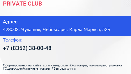 PRIVATE CLUB по адресу 428003, Чувашия, Чебоксары, Карла Маркса, 52Б в дальнейшем Организация, размещена в следующих категориях: