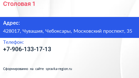 Столовая №1 по адресу 428017, Чувашия, Чебоксары, Московский проспект, 35 в дальнейшем Организация, размещена в следующих категориях: