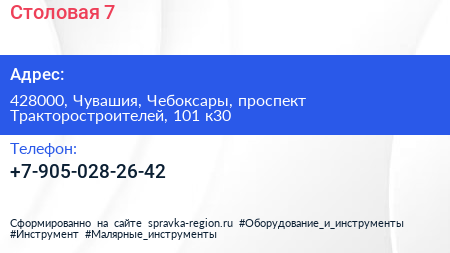 Столовая №7 по адресу 428000, Чувашия, Чебоксары, проспект Тракторостроителей, 101 к30 в дальнейшем Организация, размещена в следующих категориях: