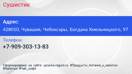 Сушистик по адресу 428010, Чувашия, Чебоксары, Богдана Хмельницкого, 97 в дальнейшем Организация, размещена в следующих категориях: