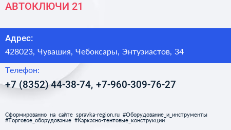 АВТОКЛЮЧИ 21 по адресу 428023, Чувашия, Чебоксары, Энтузиастов, 34 в дальнейшем Организация, размещена в следующих категориях: