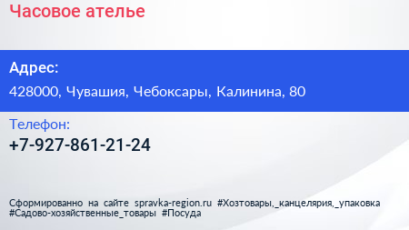 Часовое ателье по адресу 428000, Чувашия, Чебоксары, Калинина, 80 в дальнейшем Организация, размещена в следующих категориях: