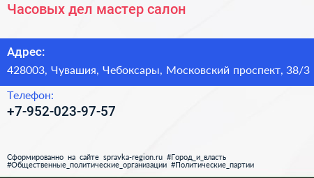 Часовых дел мастер, салон по адресу 428003, Чувашия, Чебоксары, Московский проспект, 38/3 в дальнейшем Организация, размещена в следующих категориях: