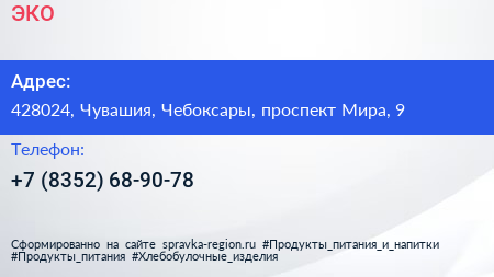 ЭКО по адресу 428024, Чувашия, Чебоксары, проспект Мира, 9 в дальнейшем Организация, размещена в следующих категориях: