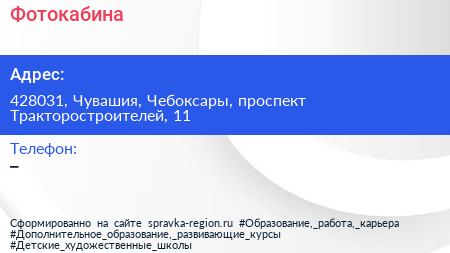 Фотокабина по адресу 428031, Чувашия, Чебоксары, проспект Тракторостроителей, 11 в дальнейшем Организация, размещена в следующих категориях: