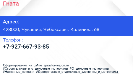 Гната по адресу 428000, Чувашия, Чебоксары, Калинина, 68 в дальнейшем Организация, размещена в следующих категориях: