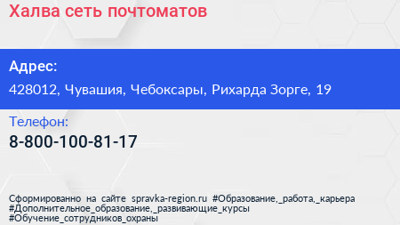 Халва, сеть почтоматов по адресу 428012, Чувашия, Чебоксары, Рихарда Зорге, 19 в дальнейшем Организация, размещена в следующих категориях:
