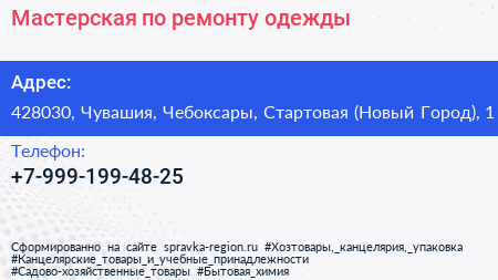 Мастерская по ремонту одежды по адресу 428030, Чувашия, Чебоксары, Стартовая (Новый Город), 1 в дальнейшем Организация, размещена в следующих категориях: