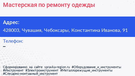 Мастерская по ремонту одежды по адресу 428003, Чувашия, Чебоксары, Константина Иванова, 91 в дальнейшем Организация, размещена в следующих категориях: