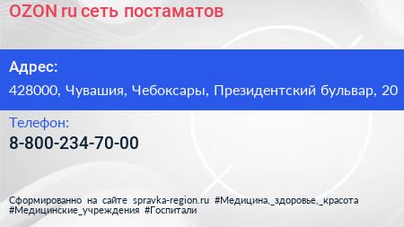 OZON.ru, сеть постаматов по адресу 428000, Чувашия, Чебоксары, Президентский бульвар, 20 в дальнейшем Организация, размещена в следующих категориях: