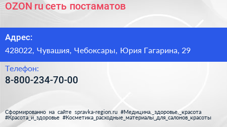 OZON.ru, сеть постаматов по адресу 428022, Чувашия, Чебоксары, Юрия Гагарина, 29 в дальнейшем Организация, размещена в следующих категориях: